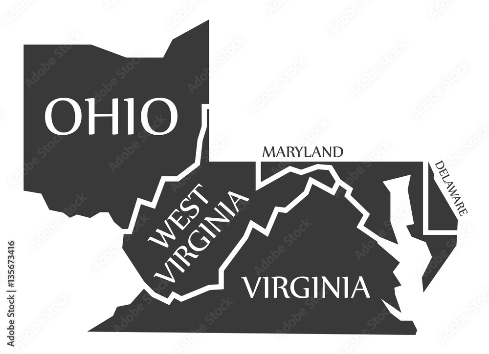 Ohio West Virginia Virginia Maryland Delaware Map labelled