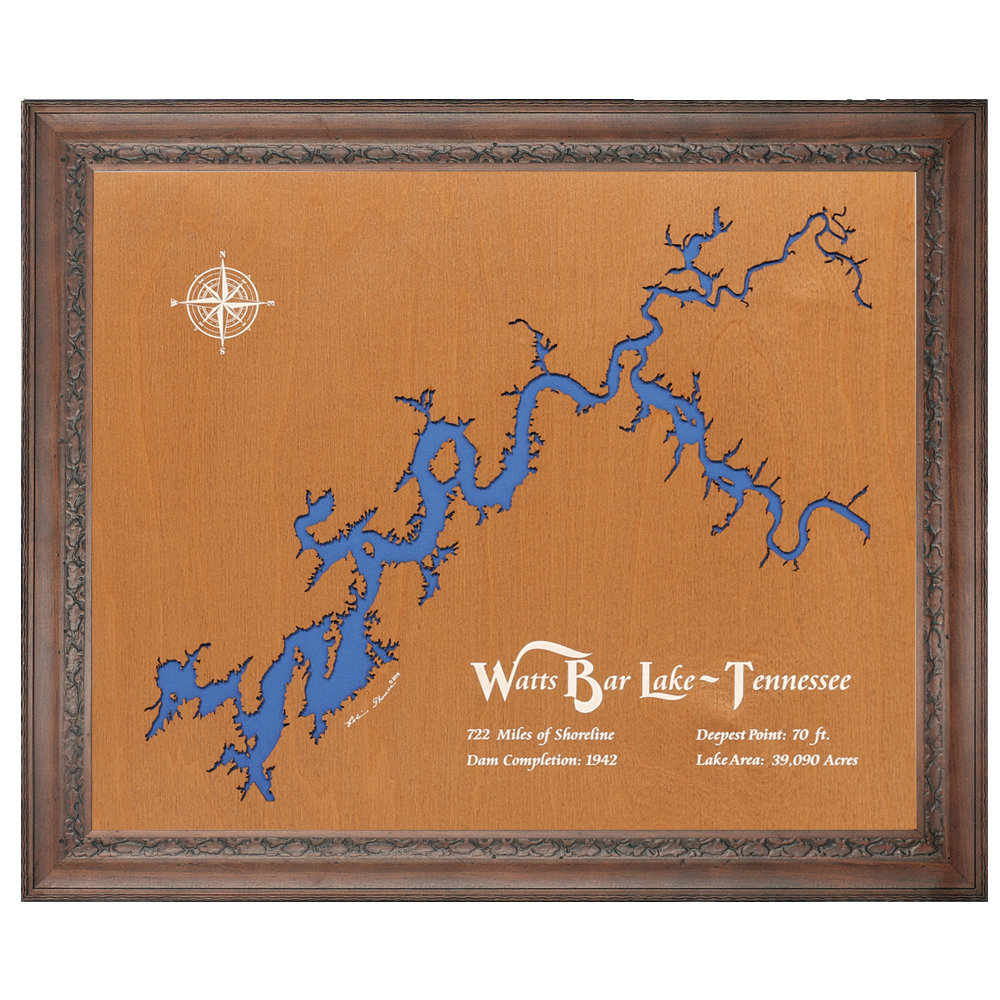 Watts Bar Lake, TN 3D Wood Map | Laser etched Wood Charts